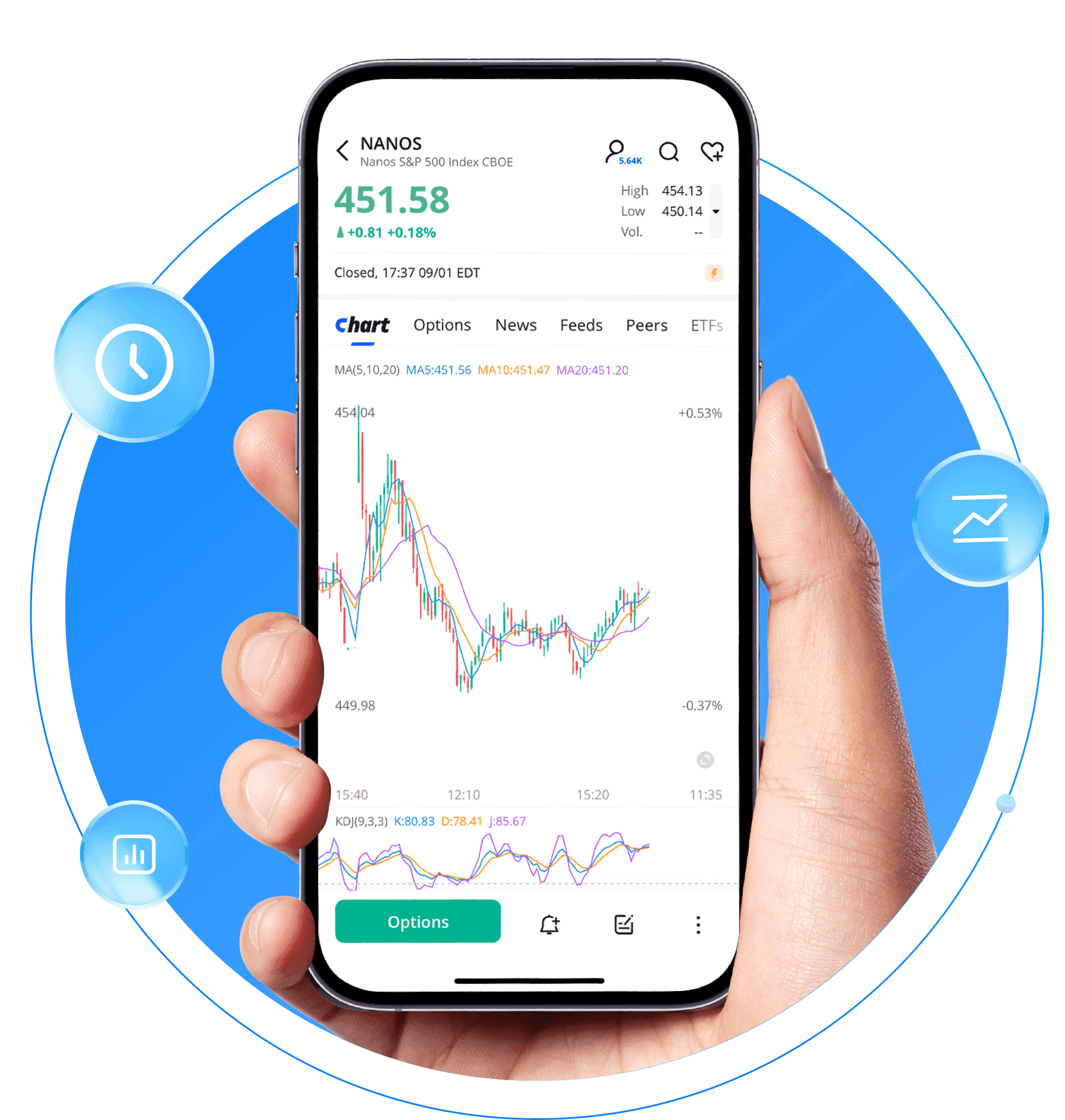 Trade stocks, ETFs, options, index options, and more, with one Webull account.
