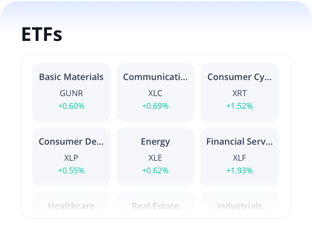 Trade stocks listed on US exchanges and over 3,300+ ETFs with real-time market data, advanced charting tools and zero commissions.