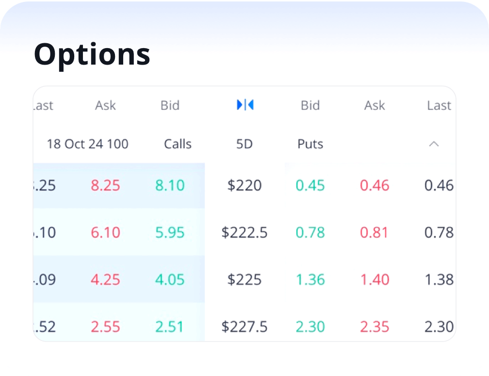 Trade options with Webull's commission-free platform featuring multi-leg strategies and customizable tools. Benefit from no contract fees or commissions for stock and ETF options, and low fees of $0.55 per contract on index options. Analyze risk and create strategies easily with our user-friendly options chain.